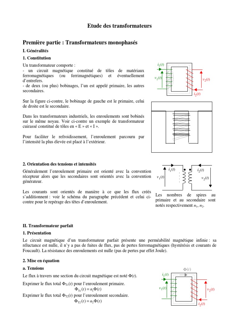 Transformateur 2 3 Introduction et transformateur à deux enroulements enroulement primaire N1 tours Primaire sous l'hypothèse de la perméabilité infinie la reluctance est nulle et la valeur d'inductance tend vers l'infini transformateur idéal. Le premier indice précise s’il s’agit d’un transformateurmonophasé ou triphasé Le 2èmeindice correspond au nombre totald’enroulements par phase 1ph4w est un transformateur monophasé à 3 enroulementssecondaires 3ph3w est un transformateur triphasé à 2 enroulementssecondaires par phase. Transformateur à enroulements séparés transformateur avec le ou les enroulements primaires séparés du ou des enroulements secondaires par au moins une isolation principale TC/SC 96 Terms Info Publications Published in IEC , ed (0509).