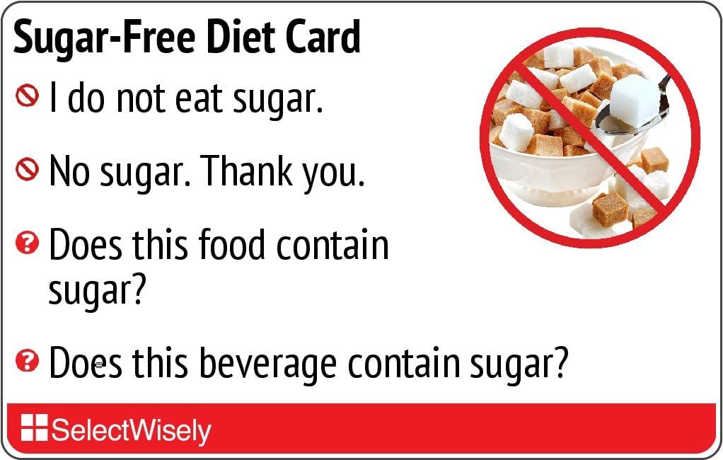 Sugar Free Diet Translation Card Vegetarian Special Diets Selectwisely