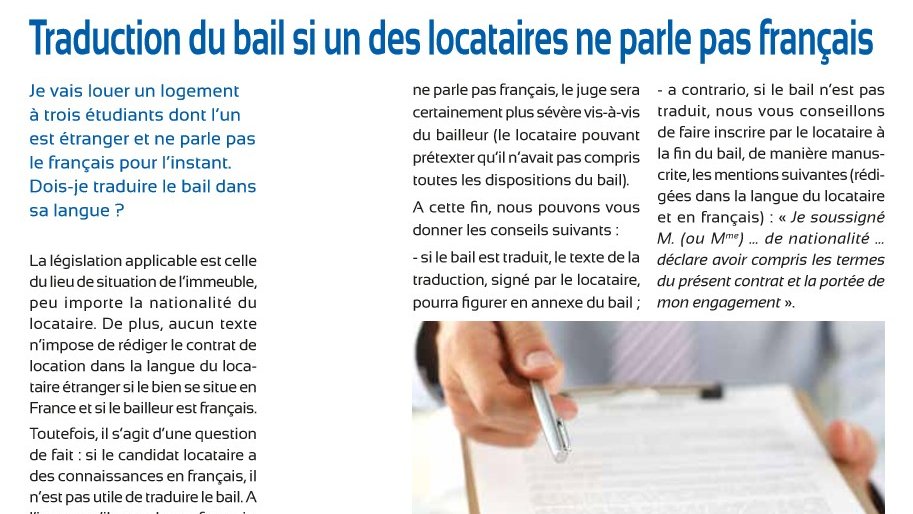 Traduction Du Bail Si Un Des Locataires Ne Parle Pas Francais Faq Unpi
