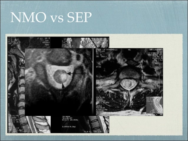 Neuromyelitis optica (NMO) or Devic's syndrome is a severe demyelinating disease of the central nervous system involving preferentially the optic nerves and the spinal cord Until recently, NMO was described as an atypical multiple sclerosis IMS), characterized by an unusual clinical presentation, a severe relapsing progression, and a poor response to usual MS treatments. Neuromyelitis optica spectrum disorders (NMOSD) is an etiologically heterogeneous syndrome predominantly characterized by acute inflammation of the optic nerve (optic neuritis, ON) and the spinal cord () Episodes of ON and myelitis can be simultaneous or successive A relapsing disease course is common, especially in untreated patients. Neuromyelitis optica is an autoimmune disorder that affects the nerves of the eyes and the central nervous system, which includes the brain and spinal cord Explore symptoms, inheritance, genetics of this condition.