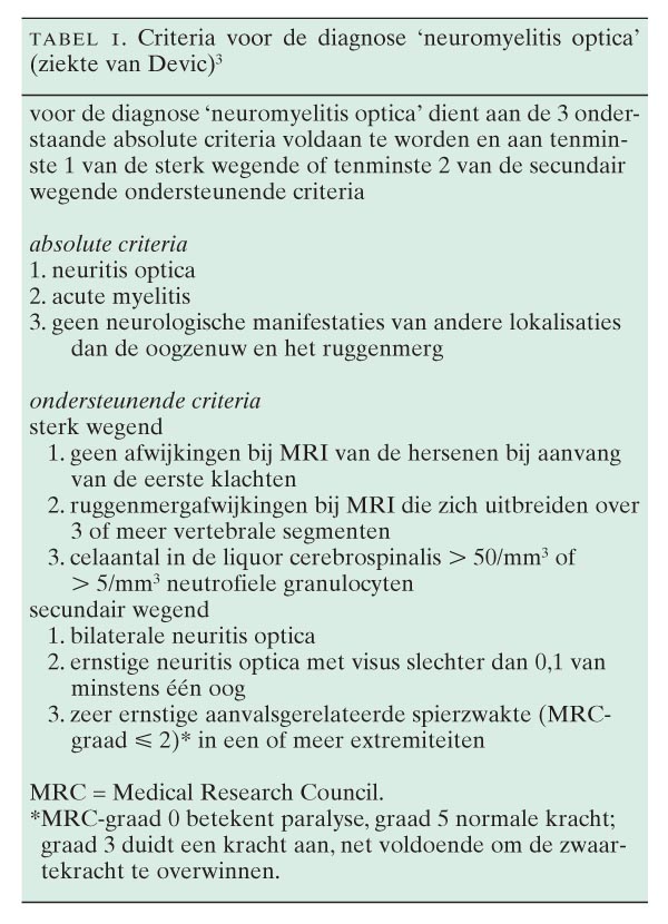 Neuromyelitis Optica Ziekte Van Devic Een Zware Variant Van Multiple Sclerose Nederlands Tijdschrift Voor Geneeskunde