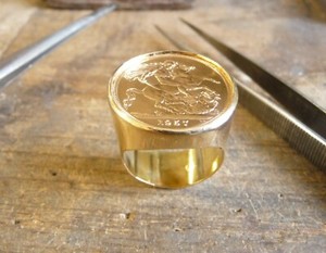 Chevaliere Or Ronde Avec Piece Or Souverain Avec Douille Interieure Ebay