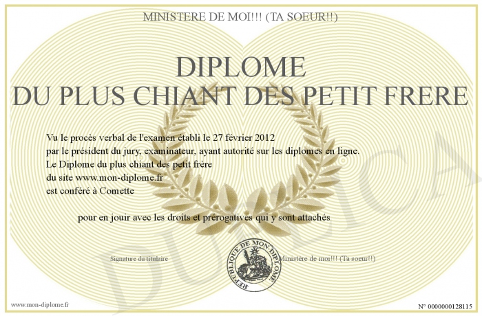 Diplome Du Plus Chiant Des Petit Frere