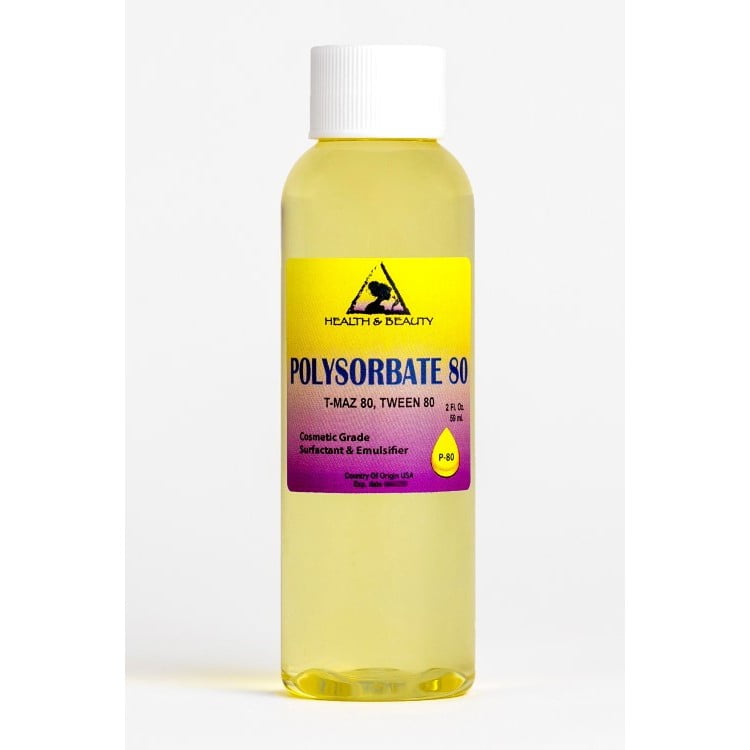 Polysorbate 80. Polysorbate % Pure Oil Soap Making Supplies Bath Body Tween 80 TMaz 80 (32oz) $2799 $ 27 99 ($2799/Count) FREE Shipping Only 14 left in stock order soon Related searches polysorbate 80 for bath bombs citric acid sodium lauryl sulfoacetate polysorbate. The food additive polysorbate 80 (polyoxyethylene () sorbitan monooleate), which is a mixture of polyoxyethylene ethers of mixed partial oleic acid esters of sorbitol anhydrides and related compounds, may be safely used in food in accordance with the following prescribed conditions. Polysorbate 80 (or E433) is a nonionic surfactant and emulsifier find use in foods as emulsifier for salad dressings and chocolates, in cosmetics for preparing skin, facial cleansers and hair care products, and to disperse active ingredients in pharmaceuticals benefiting the pharmacological industry.