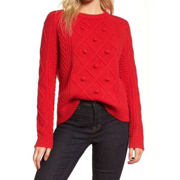 J Crew Red Women S Small S Cable Knit Pom Pom Crewneck Sweater Overstock