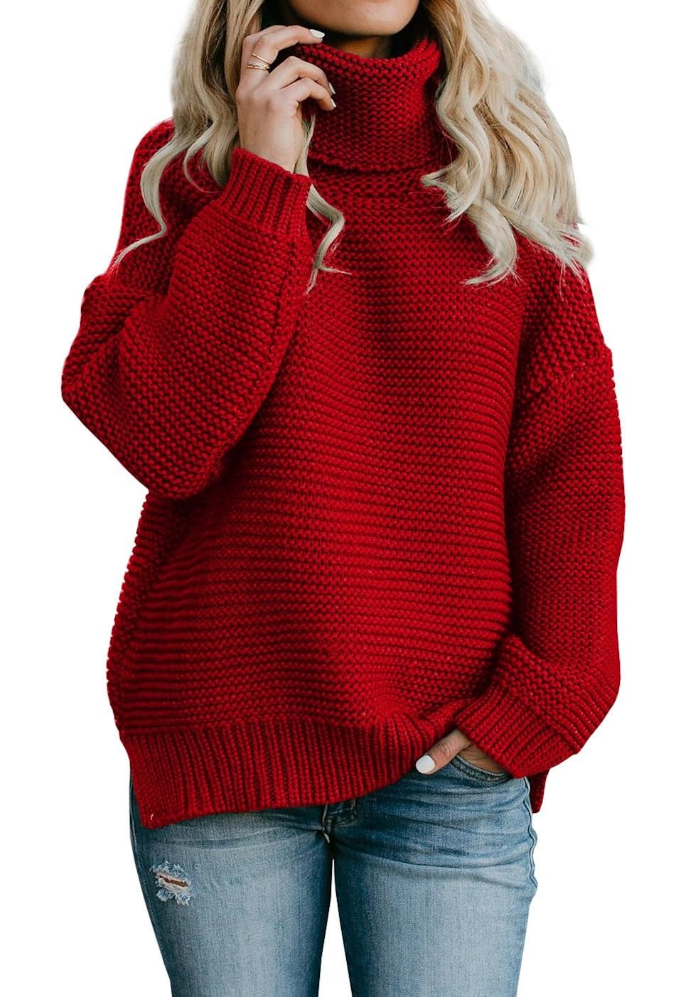Buy alizko Womens Casual Sweaters Turtleneck Long Sleeve Chunky Knit Pullover Sweater Red At Amazon In