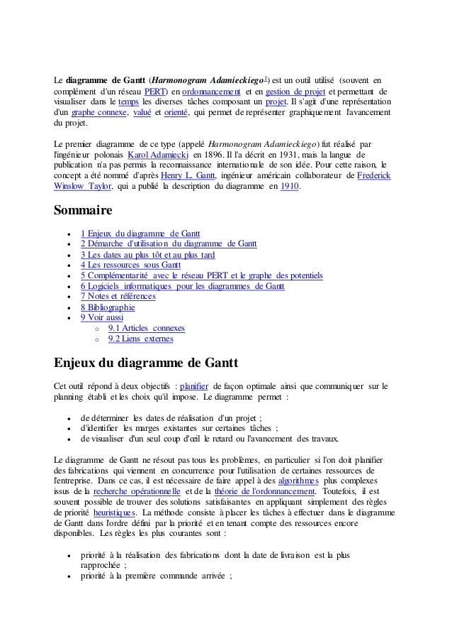 Diagrammes De Gantt Et Pert