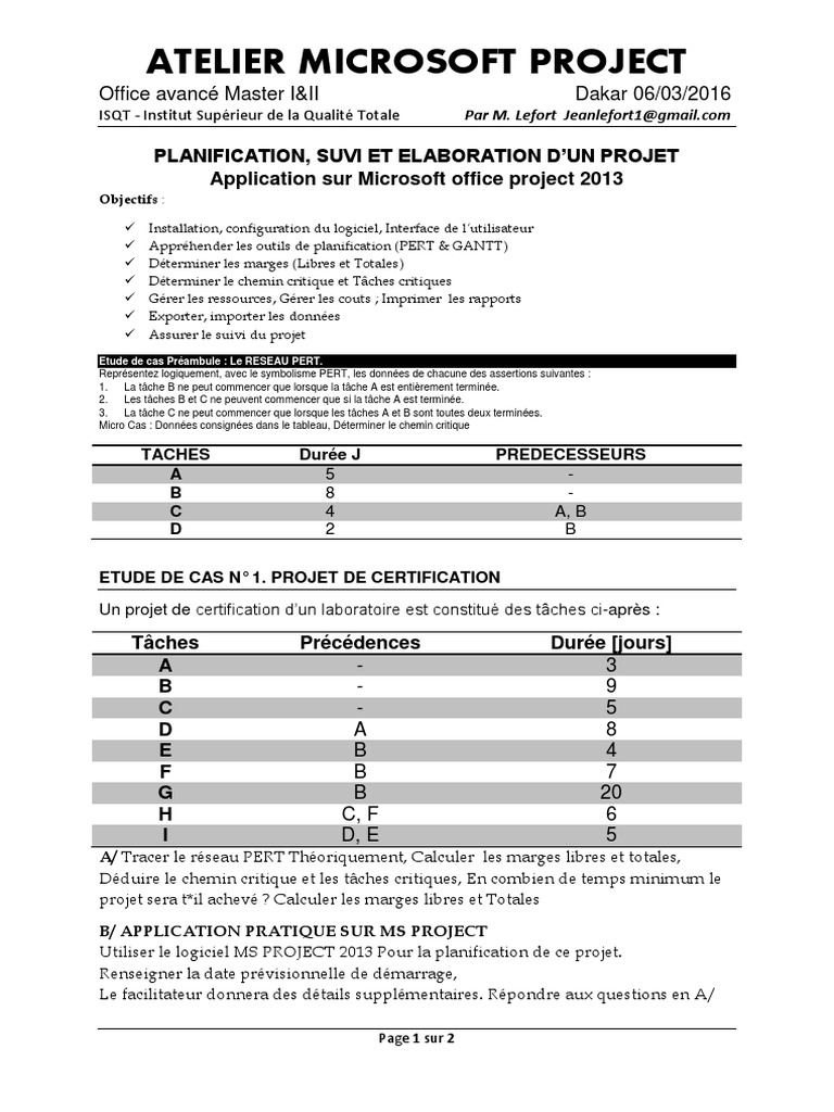 Atelier Ms Project 13 M12 1 Planification Logiciel