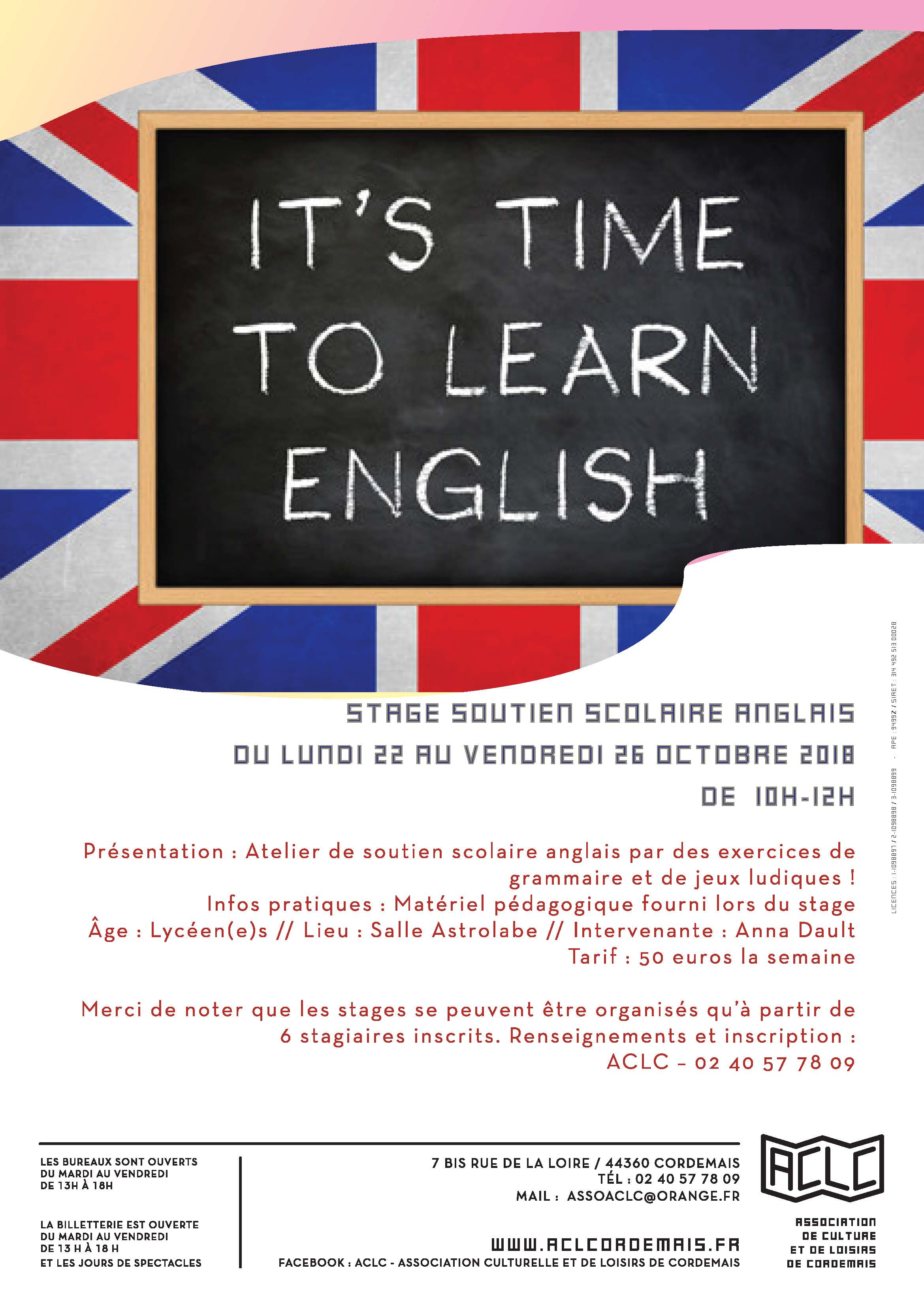 Stage Soutien Scolaire Anglais Aclc Association Culturelle Et De Loisirs De Cordemais