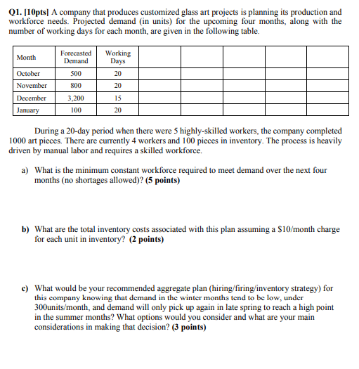 Q1 10pts A Company That Produces Customized Glas Chegg Com