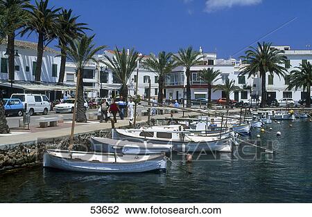Bateaux Dans Port Fornells Minorque Iles Baleares Espagne Banque D Image Fotosearch
