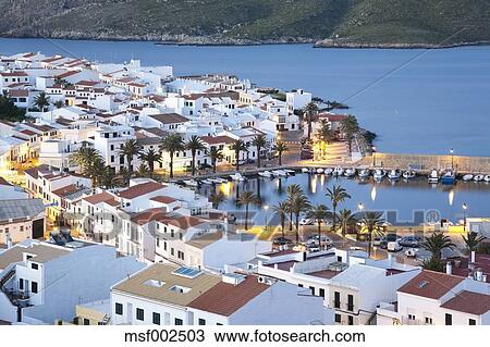 Espagne Fornells Menorca Vue De Port A Soir Banque D Image Msf Fotosearch