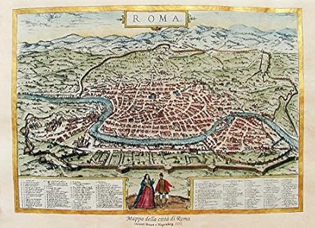 Florenceprints Stampa D Arte Mappa Di Roma 1572 42x30 Su Carta Antica Stampata E Dipinta A Mano Amazon It Casa E Cucina