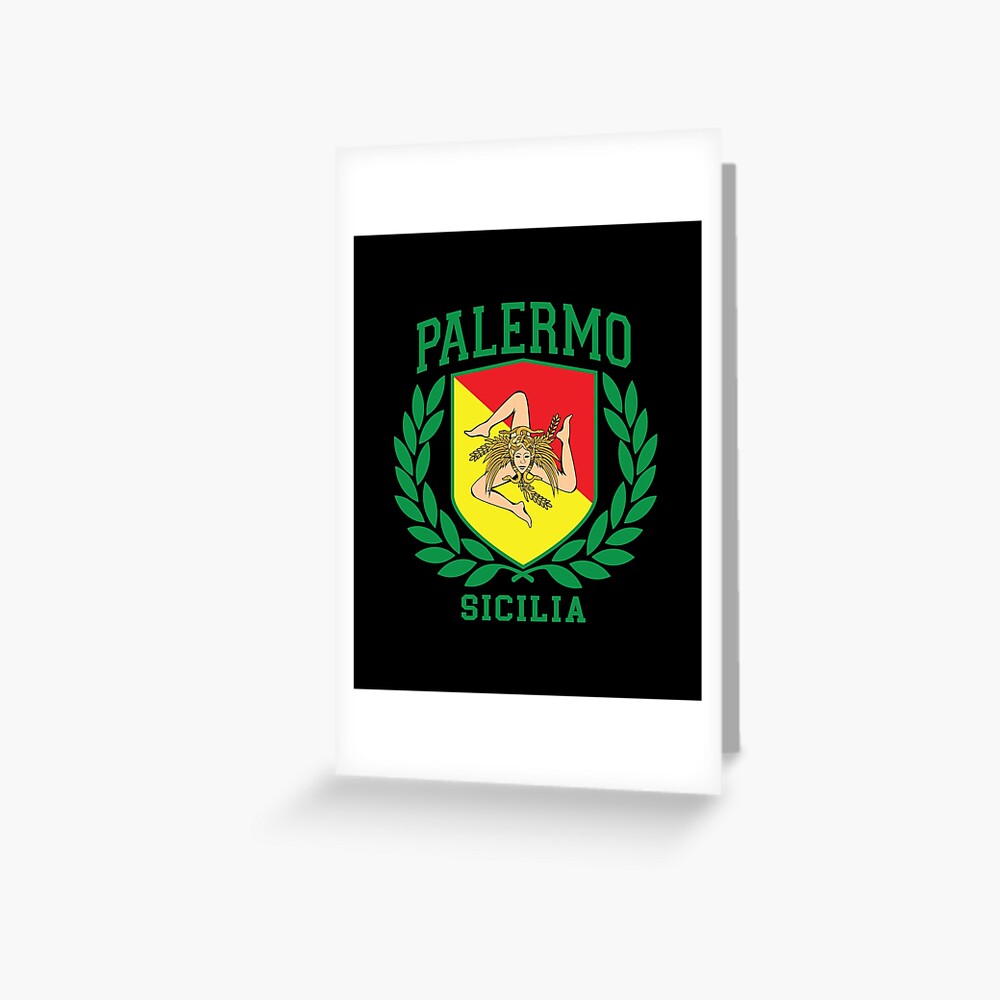 Sicilia Flag And Shield With Trinacria Palermo Greeting Card By Spazzoshirts Redbubble