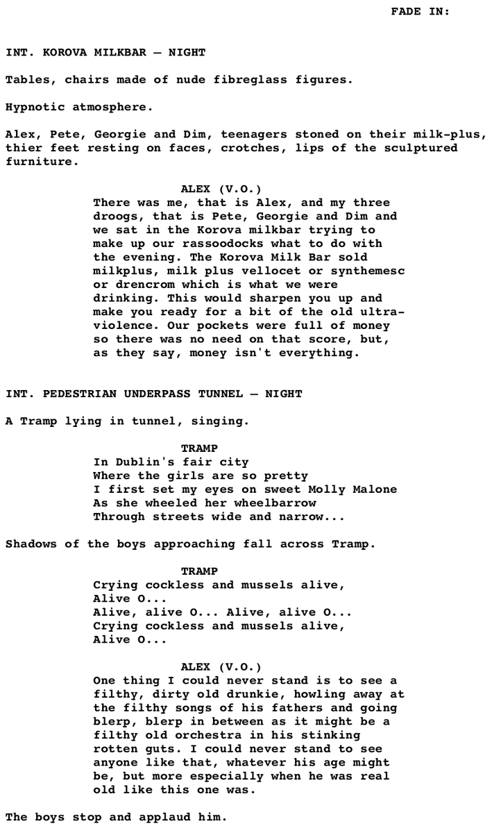 Scott Myers Page One A Clockwork Orange 1971 Screenplay By Stanley Kubrick Novel By Anthony Burgess