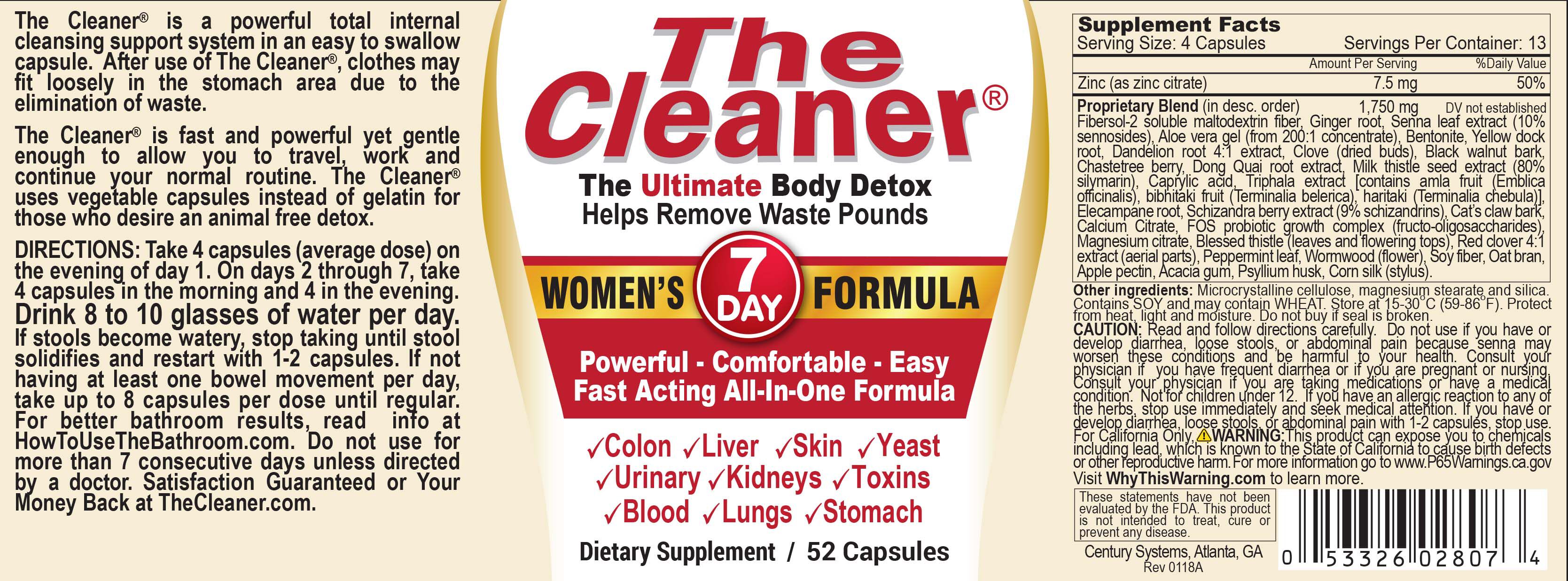 Amazon Com The Cleaner 7day Women S Formula Ultimate Body Detox 52 Capsules Health Personal Care