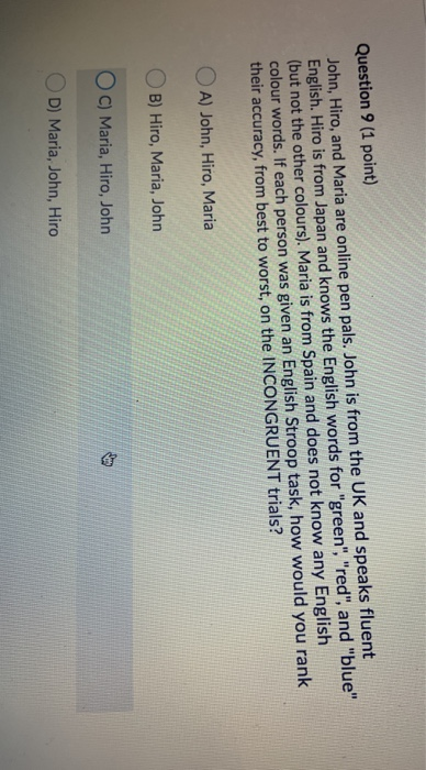Solved Question 9 1 Point John Hiro And Maria Are Onl Chegg Com
