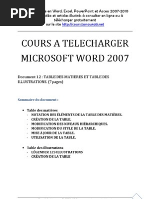Tables Des Matieres Et Table D Illustration Word 07 Microsoft Word Bouton Informatique