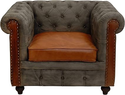 Korb Outlet Chesterfield Fauteuil En Cuir Veritable Rembourre Pour Salon Style Antique Vintage Marron Jean Amazon Fr Cuisine Maison
