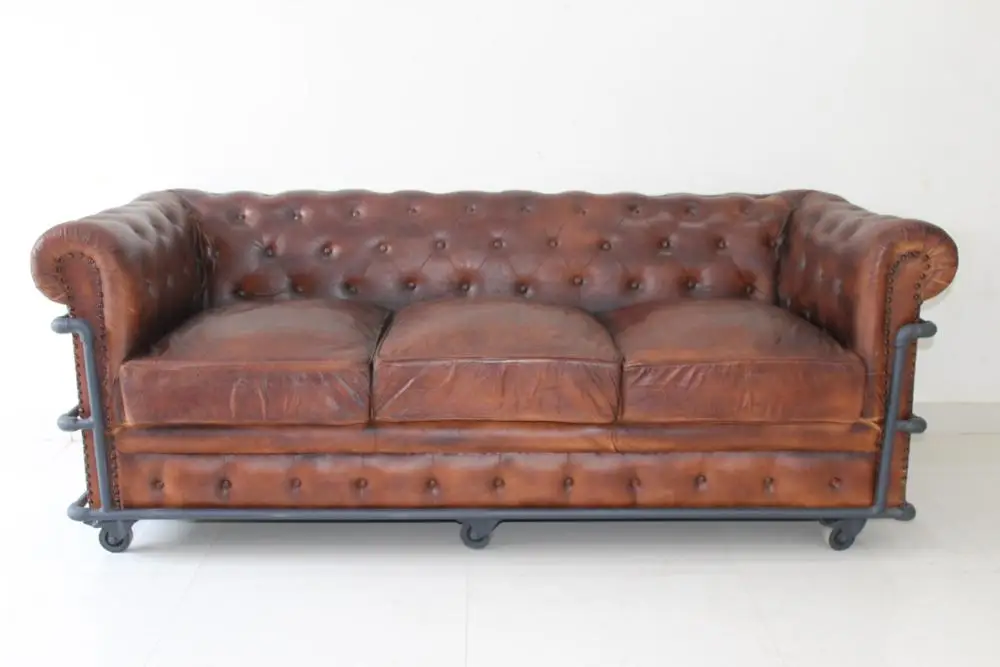 Vintage 3 Garde Chesterfield Canape En Cuir Veritable Industriel En Cuir Canape Avec Cadre De Tuyauterie Et Roues Canape En Cuir De Style Francais Buy Chesterfield Sofa Vintage Industrial Sofa Chesterfield Chesterfield Leather