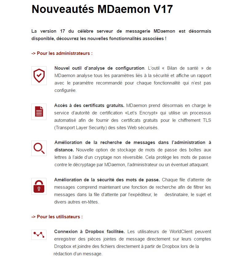 Nouveautes Mdaemon V17