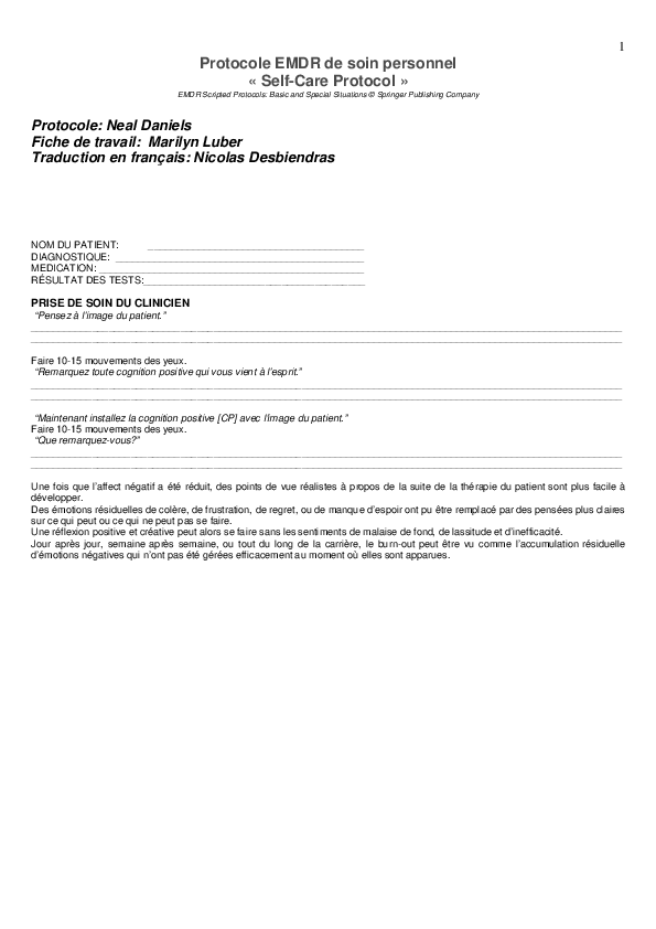 Pdf Protocole Emdr De Soin Personnel Self Care Protocol Nicolas Desbiendras Academia Edu