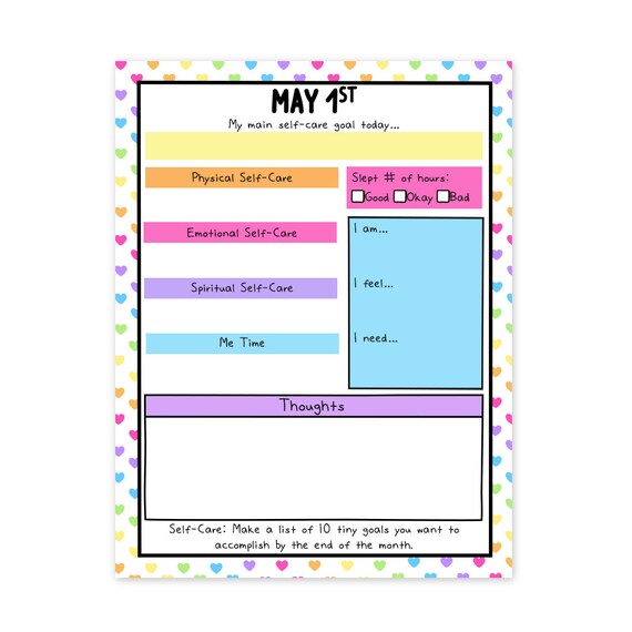 Daily Self Care Worksheets May Self Love Goals Etsy