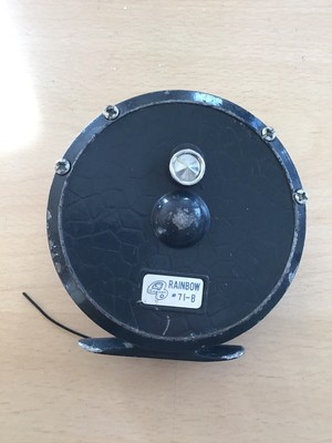 Japan" single action right or left hand fly reel for your consideration i'm offering a japan single action fly reel w/ clicker& drag this older very well made fly reel works great the clicker is loud when engaged and the aluminum spool spins free and smooth the only identification is the word"japan" and a logo mark both on the foot.