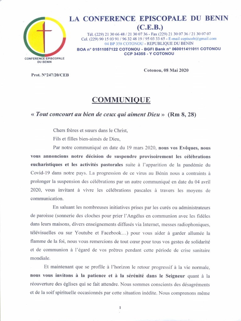 Communique Ceb Tout Concourt Au Bien De Ceux Qui Aiment Dieu