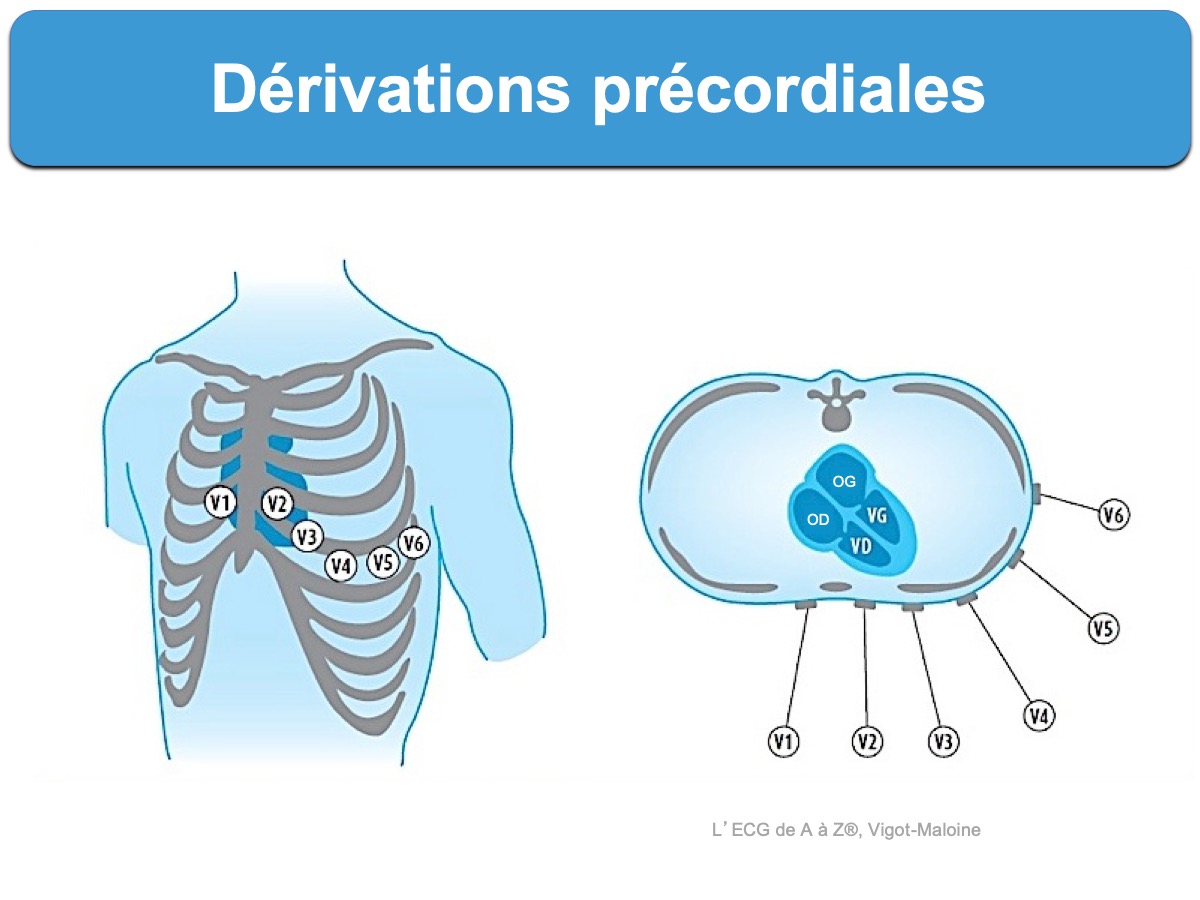 ECG Exigency and Cardiovascular Curveball – ECG Clinical Cases;. L'ECG à 12 dérivations a été standardisé par une convention internationale Elles permettent d'avoir une idée tridimensionnelle de l'activité électrique du cœur 3 Six dérivations frontales Les dérivations frontales sont au nombre de 6, sont obtenues en plaçant les électrodes au niveau des membres(figure 2). Les dérivations cardiaques Comme il a été dit plus haut, elles constituent diverses morphologies de la courbe de l'ECG, suivant le positionnement de l'électrode enregistrant Il existe deux types les dérivations frontales et précordiales.