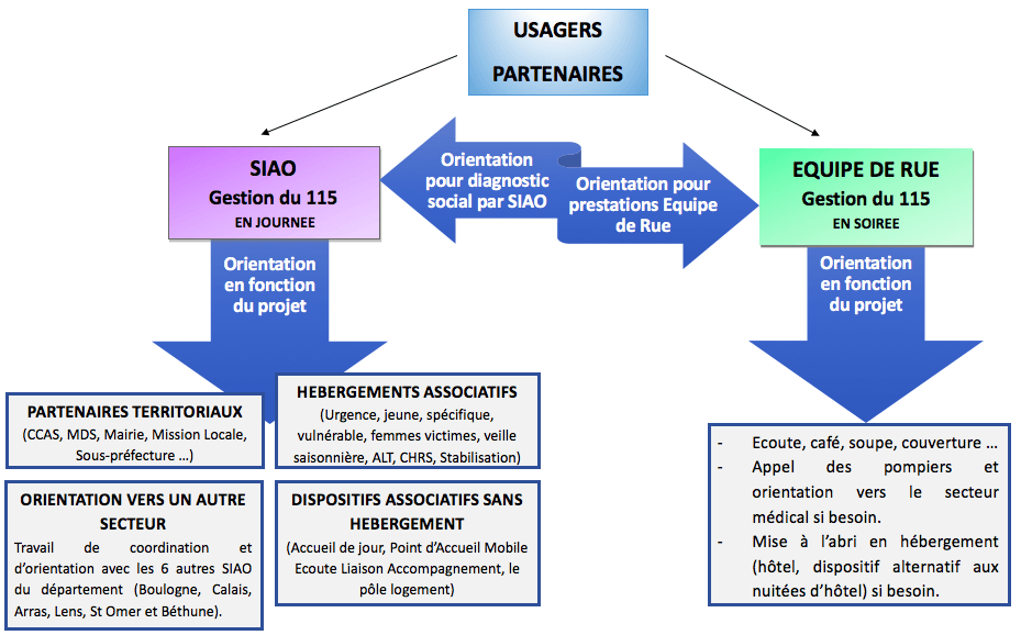 PÔle veille sociale 115 accueil de jour deal Équipe de rue plateforme logement siao service insertion logement accompagnement social hÉbergement protection de l'enfance aller au contenu accueil de jour (du lundi au samedi 8h/h le dimanche 10h/18h) prÉsentation. Du renforcement de la veille sociale 4 accueils de jours sont mobilisés dans le BasRhin, de l'intensification des maraudes 1 avec en outre, pour la première fois cette année, la création d'une maraude professionnelle constituée par le service intégré d’accueil et d’orientation ( SIAO service intégré d'accueil et d'orientation ), opérationnelle 7jours /7 et compétente sur l'ensemble du département. Veille sociale Informer, évaluer, orienter et accompagner les personnes en errance.