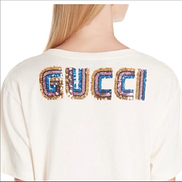 Gucci Buttercream Cotton Maison De L Amour Sequined T Shirt Xs Gucci Tlc