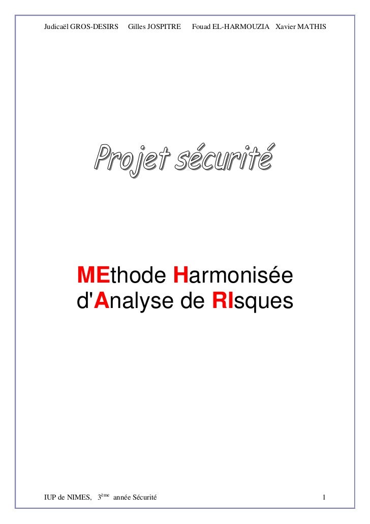 Judicael Gros Desirs Gilles Jospitre Fouad El Harmouzia Xavier Mathis Methode Harmonisee D Analyse De Risques Iup De Nimes 3 Eme Annee Securite 1 Pdf Telechargement Gratuit