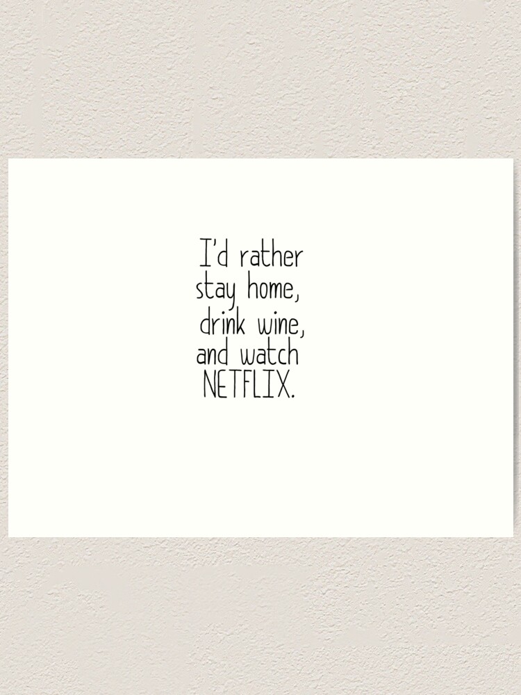 I D Rather Stay Home Drink Wine And Watch Netflix Art Print By Teesbynatalie Redbubble