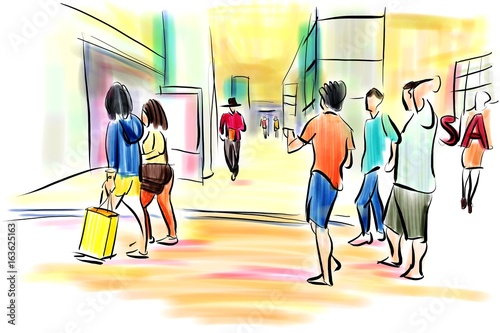 People Walking In Shopping Mall Free Hand Sketch Buy This Stock Illustration And Explore Similar Illustrations At Adobe Stock Adobe Stock