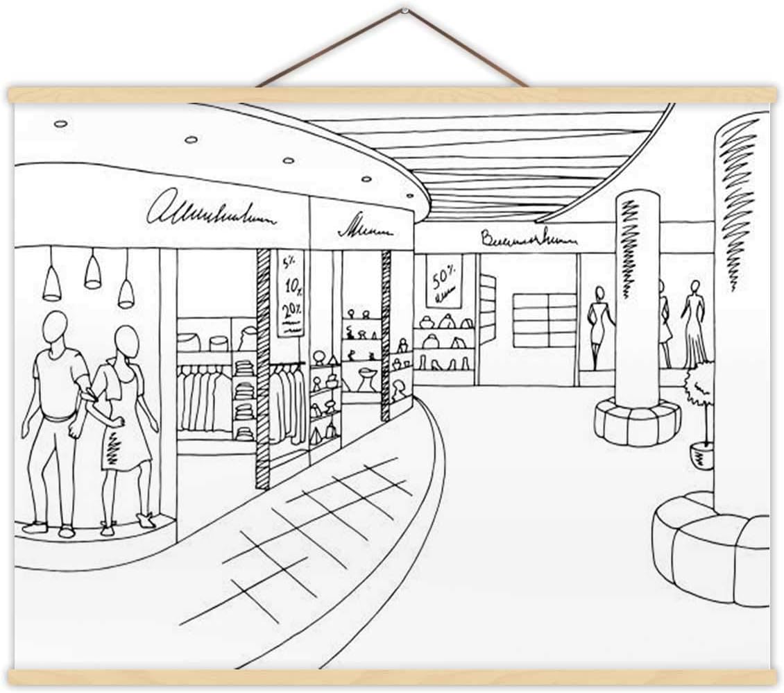 Amazon Com Shopping Mall Graphic Black White Interior Sketch Illustration Russia Decor Posters Shopping Mall For Bedroom 12 W X 8 H Posters Prints