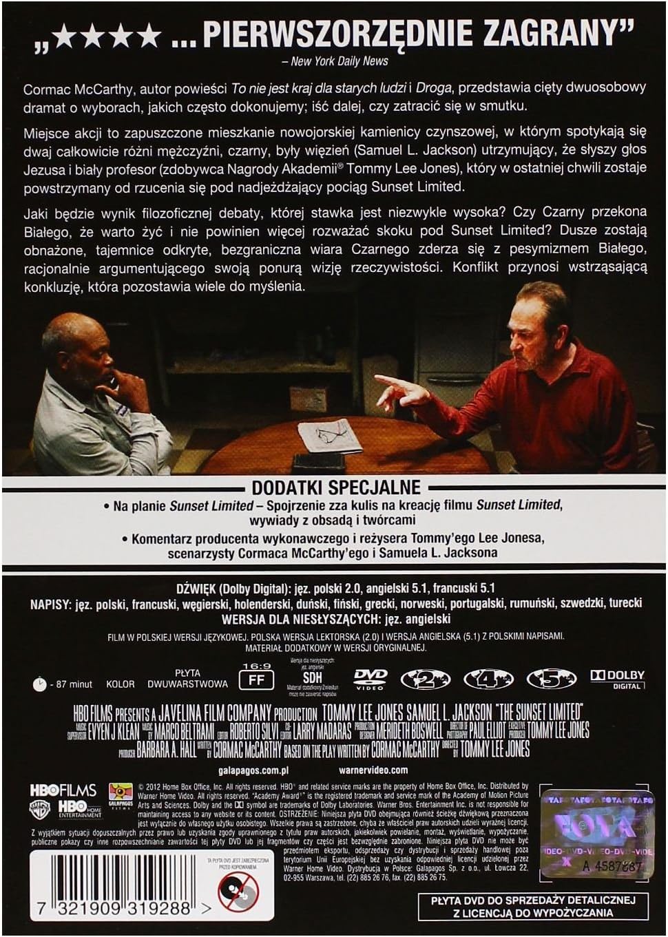 Critics Consensus The Sunset Limited's ambition is undercut by arch dialogue and a claustrophobic setting, but Tommy Lee Jones and Samuel L Jackson's dueling performances bring heft to this battle of wills. Nothing is ever black or white Based on the play of the same name by Pulitzer Prize Winner Cormac McCarthy, this searing twocharacter drama mixes humor and pathos while examining the relationship between strangers who are brought together by desperate circumstances. A két New Yorki férfi egyike fehér, a másik fekete A fehér egyetemi professzor véget akart vetni az életének, ám öngyilkossági kísérletét a másik megakadályozta A fekete felviszi magához a lepukkant lakásába, és megpróbál a lelkére beszélni Furcsa helyzet, hiszen gyilkosságért ült, ám amikor megérintette a halál szele, Isten megszólította őt, és új célt.