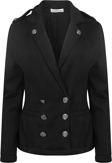 New Womens Double Breasted Gold Button Front Black Military Style Coat Jacket Fancy Impress