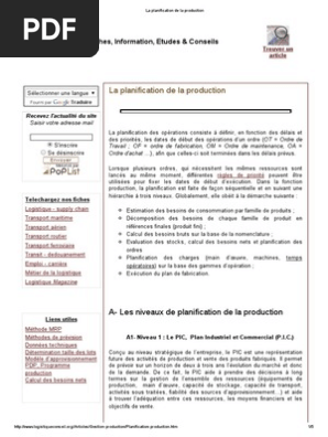 Planificateur (trice) de production (514) TerrasseVaudreuil, QC Relevant du directeur des opérations, le planificateur doit assigner les productions pour satisfaire les clients Connaissance de la suite MS Office 16 days ago. PlanificationGestion de production Zakaria Azzouzi Download PDF Download Full PDF Package This paper A short summary of this paper 35 Full PDFs related to this paper READ PAPER PlanificationGestion de production Download PlanificationGestion de production. Noun mass noun The management of resources according to a plan of economic or political development More example sentences.