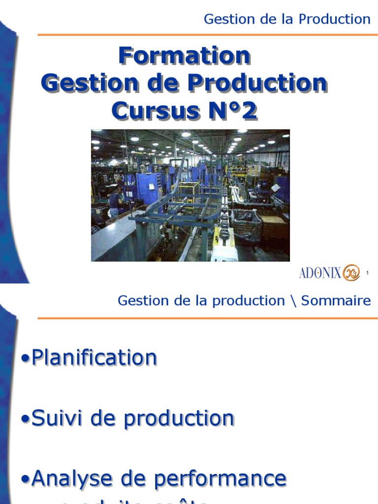 A similar project calendar system called a harmonogram was designed in the 10’s by a Polish engineer named Karol Adamiecki, but it wasn’t published until the 1930’sAnd then only in Polish So they never really caught on When other project planning systems weren’t up to the job, Gantt charts were used during WWI to track the manufacture of arms for the war effort. Planification Peu importe le nombre de commandes, le travail ne peut pas se faire plus rapidement que la capacité d’un seuil critique le goulot En assurant un équilibre entre les ventes et la production, les outils du module Planification permettent d’optimiser le calendrier et d’augmenter le nombre de projets livrés chaque mois. Planification Production Page 1 sur 50 Environ 500 essais Planification de la production 5854 mots 24 pages La planification des systèmes de Gestion des Opérations et de la Production Facteurs influençant le comportement des entreprises industrielles marocaines.