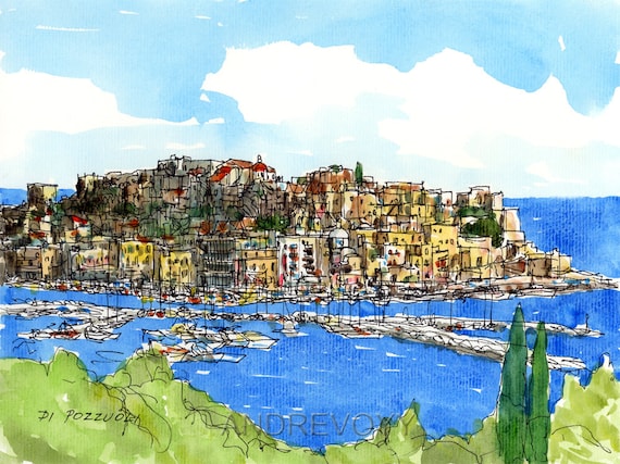 Pozzuoli Italia Stampa D Arte Da Un Dipinto Ad Acquerello Etsy