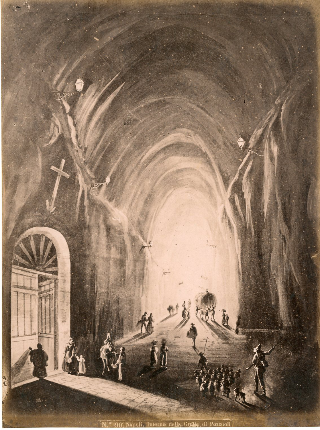 Italie Napoli Interno Della Grotta Di Pozzuoli Vintage Albumen Print Tirag Ebay