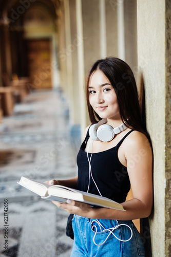 Young Or Teen Asian Girl Student In University Smiling And Reading The Book At University Buy This Stock Photo And Explore Similar Images At Adobe Stock Adobe Stock