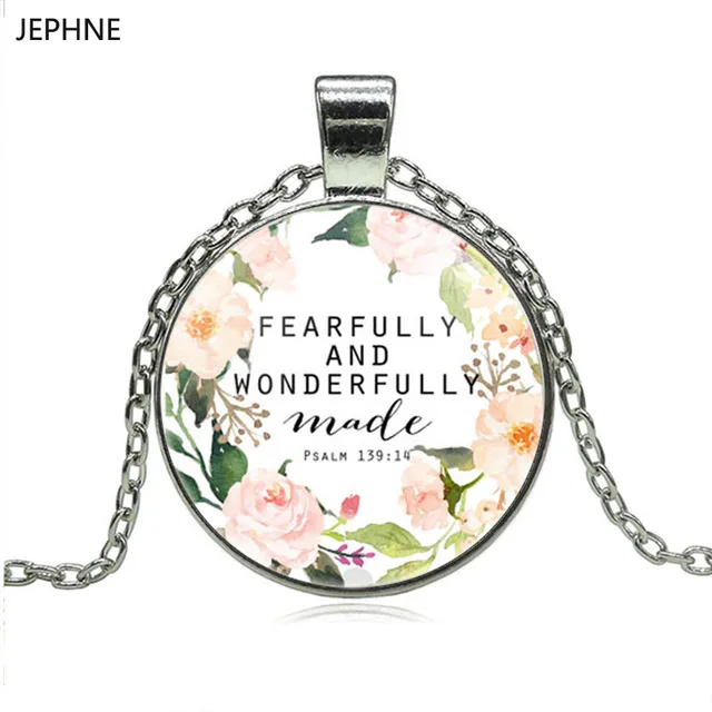 Jephne Psaume 139 14 Courageusement Et Merveilleusement Fait Citation Bible Verset Collier Cabochon Pendentif A Breloque Collier Pour Femmes Hommes Cadeau Aliexpress