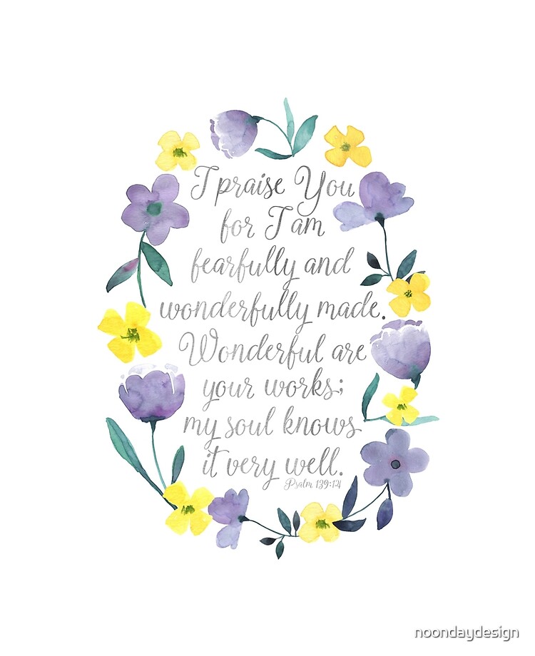 Impression Photo Psaume 139 13 14 Pour Vous A Cree Mon Etre Le Plus Proche Bible Wall Art Art Des Ecritures Citation Inspirante Christian Home Decor Aquarelles Fleurs Par Dzhenka Balimez Redbubble