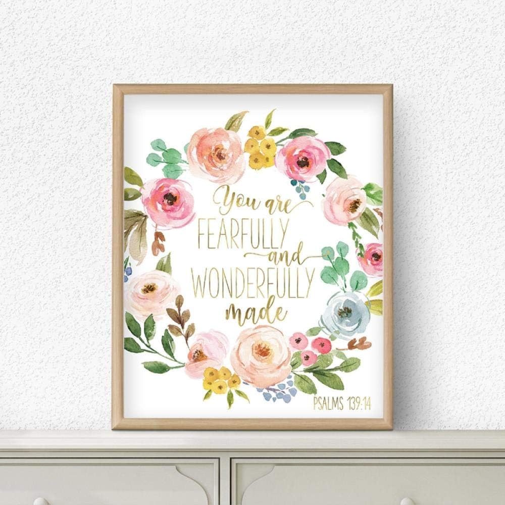 Verset De La Bible Psaume 139 14 Ecriture Pepiniere Mur Art Toile Peinture Images Aquarelle Fleurs Imprime Affiche Bebe Fille Decor 40x50cm Avec Cadre Amazon Fr Cuisine Maison