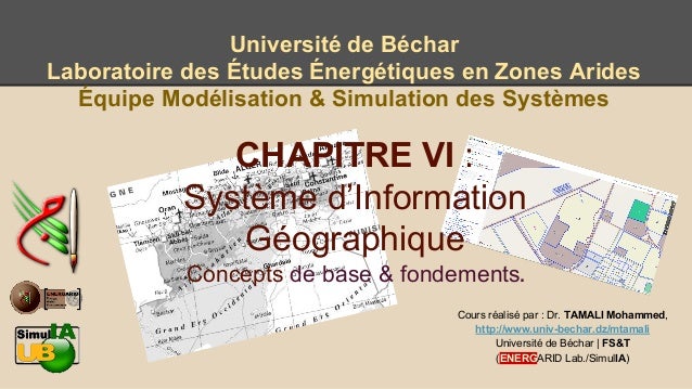 Un système d’Information Géographique est un outil informatique permettant de représenter et d’analyser toutes les choses qui existent sur terre ainsi que tous les événements qui s’y produisent Les SIG offrent toutes les possibilités des bases de données (telles. DOI /RG Project Land degradation and desertification In Arid Steppe Rangelands Of North Africa;.