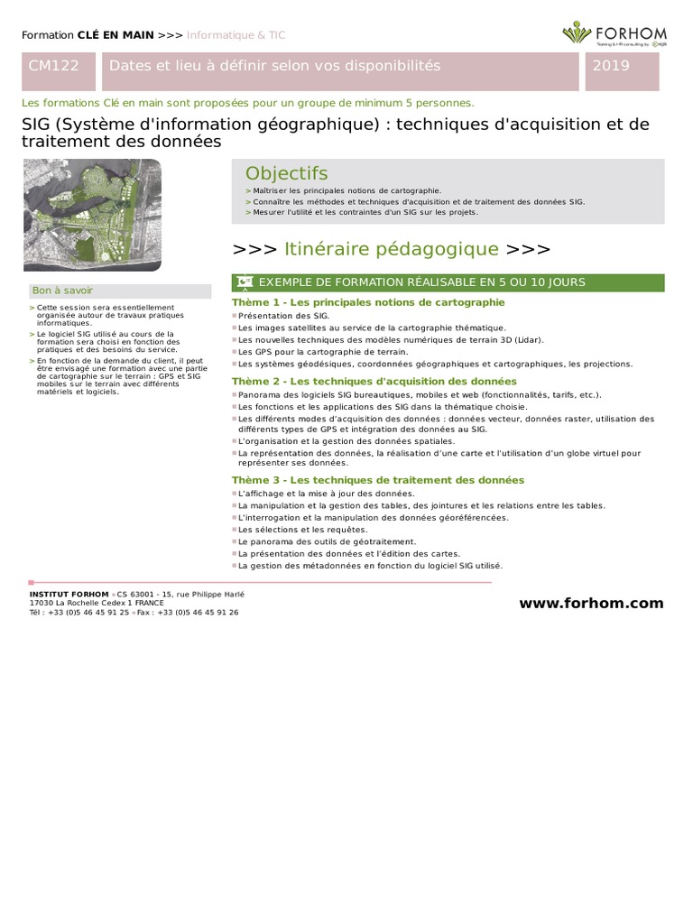 Ce cours sur les SIG (Systèmes d'information géographique) va vous permettre de comprendre les SIG en peu de temps A la fin de ce cours, vous aurez compris les éléments théoriques des SIG et serez prêt à débuter sereinement la pratique d'un logiciel SIG. Un système d’information géographique permet de représenter des données dans l’espace ce qui en fait un outil très utile quand il s’agit de produire des documents cartographiques Cette dénomination (système) indique bien le fait qu’un SIG inclut des techniciens comme les géomètres, du matériel comme des bases de données, des. Stage en système d'information géographique libre 01/ Objectif 01/ Objectif Compréhension et maîtrise des systèmes d'information géographique, sur base de l'utilisation de logiciels libres et de l'exploitation de sources de données gratuites ou peu onéreuses Ce projet est mené en parallèle avec les modules de cours, en.