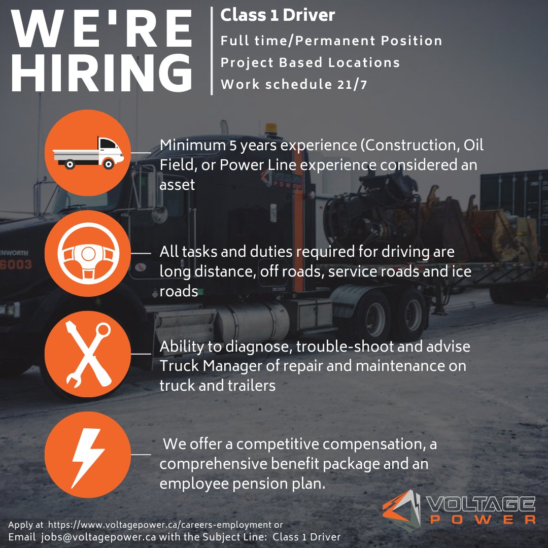 Voltage Power We Are Hiring A Full Time Class 1 Driver Apply Online Through Our Website T Co Piy5rgnxzd Or Email Your Resume To Jobs Voltagepower Ca With The Subject Line Class 1 Driver