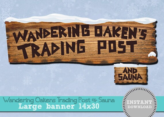 The Trading Post owners removed the old sign before Stade showed up for installation, so that was one less item to worry about The logging truck boom moved the sign pieces so that they slid over the preexisting posts, while a person on a ladder helped guide the pieces into place. A similar sign with custom wording We used this at our Frozen Birthday Party and it was a huge hit!The file is Highresolution JPEG DIGITAL FILE Size is 14x30 inches for the oaken's Trading Post SignThe Custom Sign is a little smaller but both fit on a x30 sized enlarged photo which is a really cheap way to blow up the signs. Welcome to Sweet & Salty Etsy Shop!.